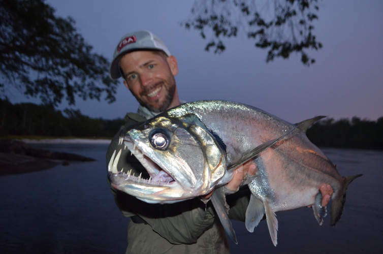 Fortunately, in Colombia, indigenous people have many rights, and thus this river and its surrounding area are under the supervision of the local community. The community has closed off the river from the estuary upwards, and any activity above this point requires their permission. It is prohibited to kill any trophy fish, and fishing is only allowed with a guide from the community, who also speak the local indigenous language in addition to Spanish. The campsite is located deep in the Colombian wilderness, a 6-hour boat ride from the last settlement and civilization.